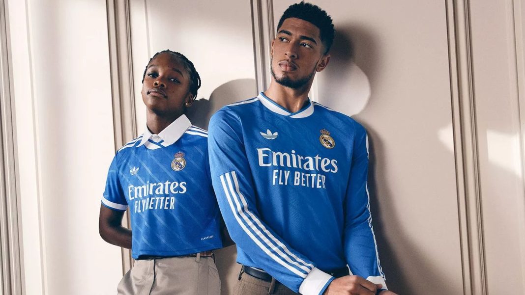 Третья форма «Реал Мадрид» 2025-26 преимущественно синего цвета с белыми деталями и белыми логотипами. Вдохновением для создания третьей формы «Мадрида» 25-26 послужили новые сиденья на «Бернабеу».